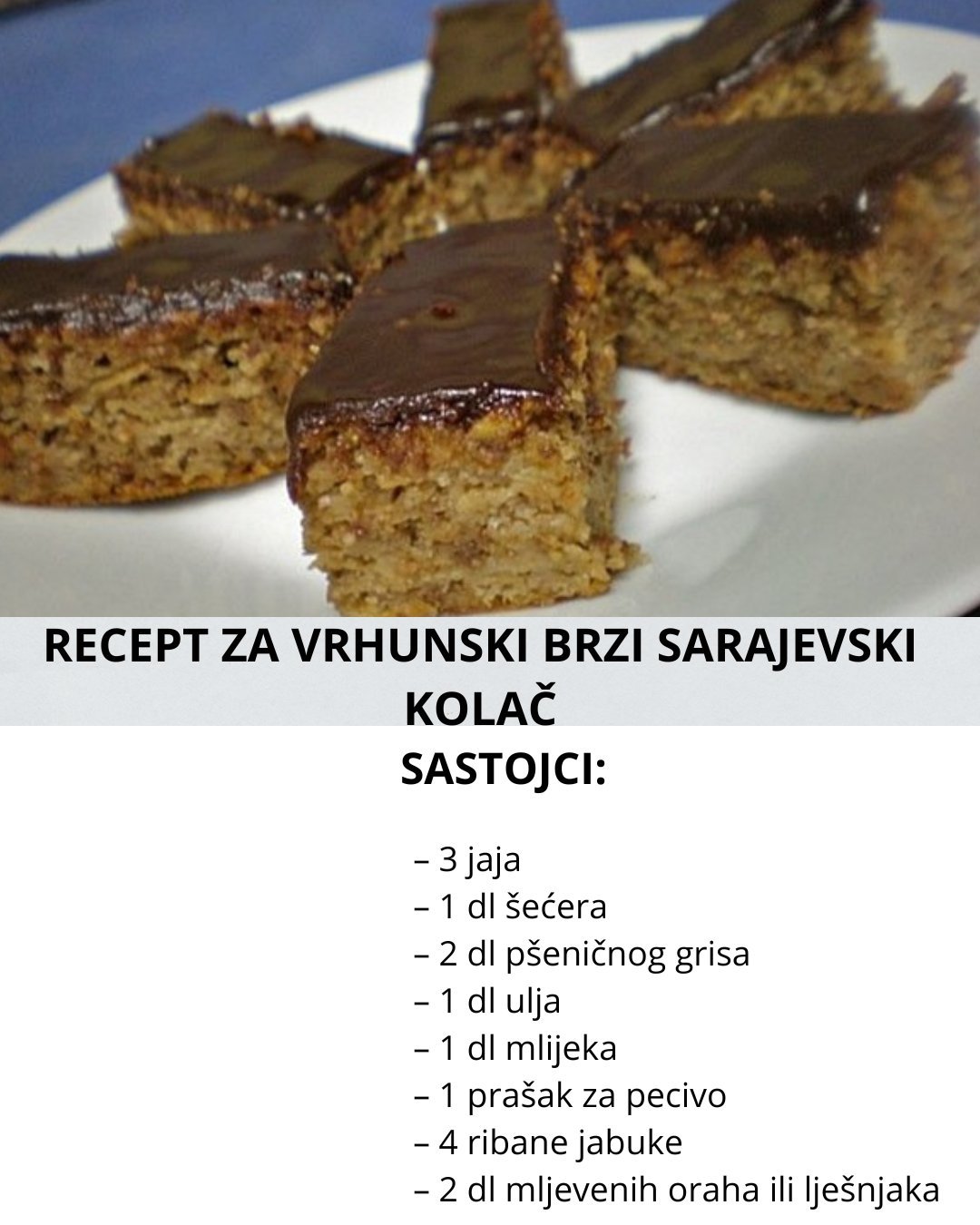 RECEPT ZA VRHUNSKI brzi Sarajevski kolač