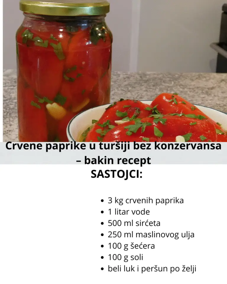 Ako tražiš provereni recept za domaću zimnicu, onda su crvene paprike u turšiji bez konzervansa pravi izbor. Ovo je tradicionalan bakin recept, potpuno prirodan i bez ikakvih veštačkih dodataka, a rezultat su hrskave, ukusne i dugotrajne paprike koje mogu stajati i do 1 godine bez kvarenja. Jednostavno, zdravo i savršeno za zimu – pravi ukus … Read more