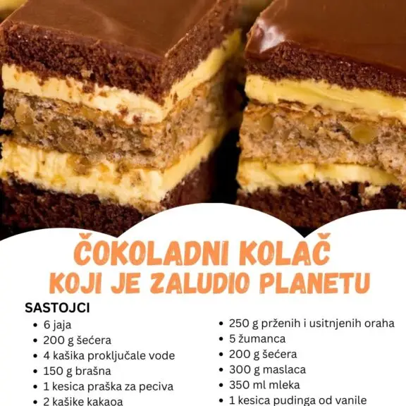Domaći čokoladni kolač koji je zaludio planetu pravi je raj za ljubitelje čokolade! Sa dva meka biskvita, bogatim kremama i prelepom glazurom, svaki zalogaj ovog kolača pruža nevjerojatno bogatstvo okusa i tekstura. Prvo se topite u sočnom biskvitu, zatim u kremastoj kombinaciji žumanaca i maslaca, a na kraju uživate u savršenoj čokoladnoj glazuri. Ovaj kolač … Read more