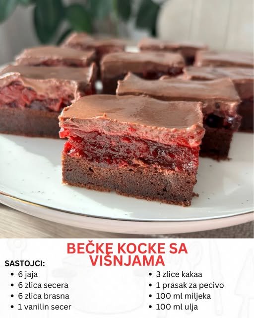 Osvežavajući i bogat voćni sloj zaslužan je za jedinstven karakter Bečkih kocki. Koristi se 300 g višanja, ali se može varirati sa malinama ili borovnicama, u zavisnosti od ukusa i sezone.