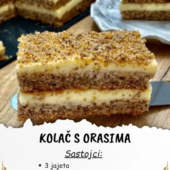 Ovaj kolač spaja sočne kore i bogat kremasti fil, a miris oraha i vanile koji se širi iz rerne prosto je neodoljiv. Kora, savršeno meka i lagana, uz bogat fil od mleka, žumanaca i bele čokolade, stvoriće pravo čudo u vašem stomaku. Bilo da ga pripremate za porodicu ili kao poslasticu za goste, ovaj kolač će osvojiti sve svojim jednostavnim, ali nezaboravnim ukusom.