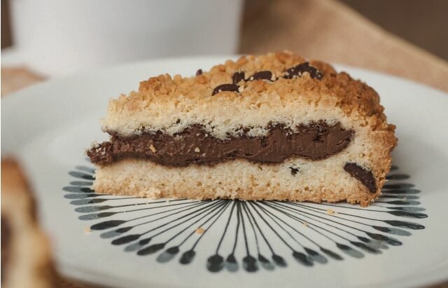 5. Na kraju rasporediti drugu polovinu smese na nuteli i blago utisnuti, ne mnogo, treba ostati mrvičasto.