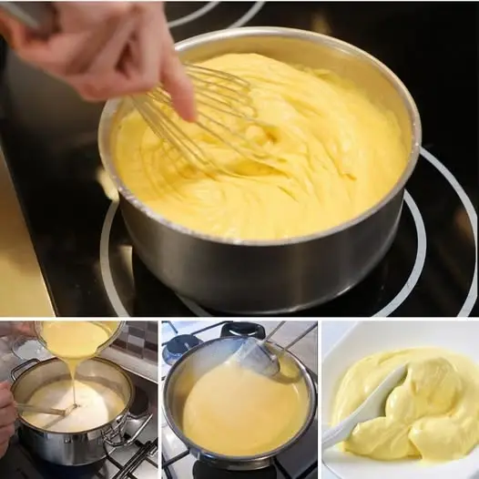 Kako sam već navela, ovo je osnovna krema, koju možete obogatiti dodatkom tučenog slatkog vrhnja, pjenasto tučenim maslacem sa dodatkom otopljene čokolade, voćnim ekstraktom…
