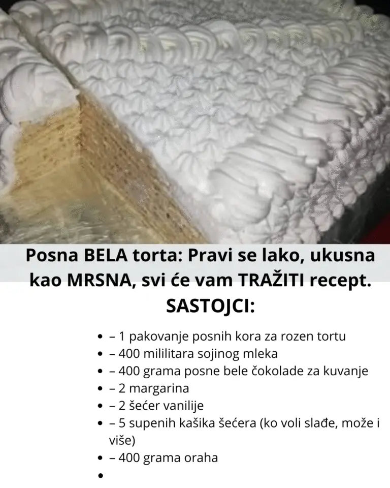 Posna BELA torta: Pravi se lako, ukusna kao MRSNA, svi će vam TRAŽITI recept.