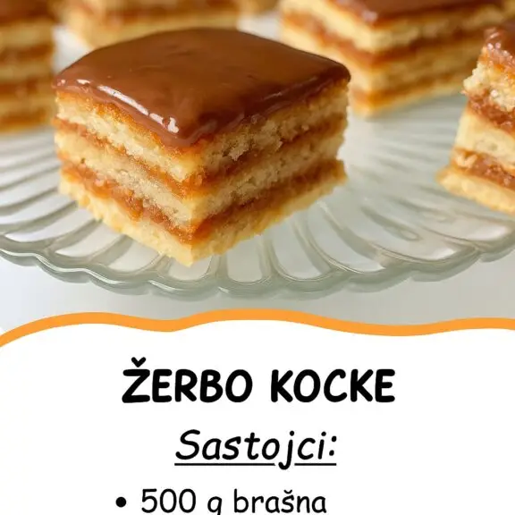 Umesite prhko testo od brašna, margarina, ulja, vode i šećera, razvucite ga u tanke kore, filujte džemom i orasima, ispecite, prelijte čokoladom i uživajte u savršenim posnim žerbo kockama!